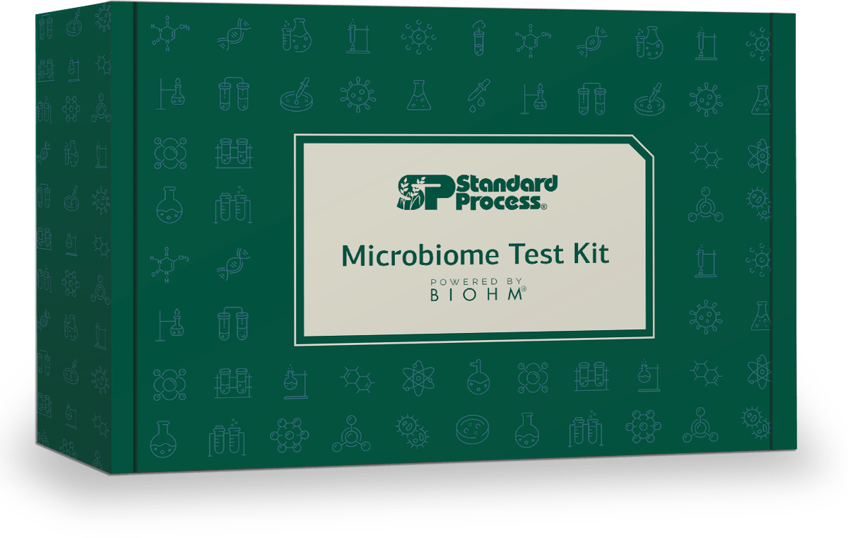 The Standard Process Microbiome Test Kit, Powered by BIOHM®, is used to assess the gut microbiome’s diversity and provide suggestions towards a healthier lifestyle.
